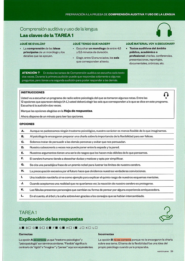 Las claves del nuevo DELE C1 es un material destinado a aquellos estudiantes que quieren presentarse a las pruebas del nivel C1 del Diploma de Español como Lengua Extranjera del Instituto Cervantes (DELE C1). Se trata de un manual práctico y de fácil manejo, estructurado en cinco unidades temáticas que ofrecen tanto los contenidos léxicos y gramaticales como los recursos para la comunicación y los referentes culturales exigidos en este nivel. Además, cada unidad contiene una sección de claves que proporciona al estudiante las herramientas necesarias para superar con éxito cada prueba. Al final del libro, se ofrecen cinco modelos de examen que reproducen fielmente las pruebas oficiales del DELE C1.